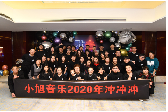 2020年,小旭音乐以游戏音频等TOB传统业务为基础,稳固提升收入的同时,以“短视频音乐营销”新业务为突破点,力图在短视频红人领域,打造更多抖音丫蛋蛋千万粉丝红人号和Q胖哥、袁莉媛等百万粉丝号,在北京、上海、成都、广州,四地继续持续发力。正如团队全家福的标语一样,一家创业14年的团队,仍然充满激情,2020继续冲冲冲!