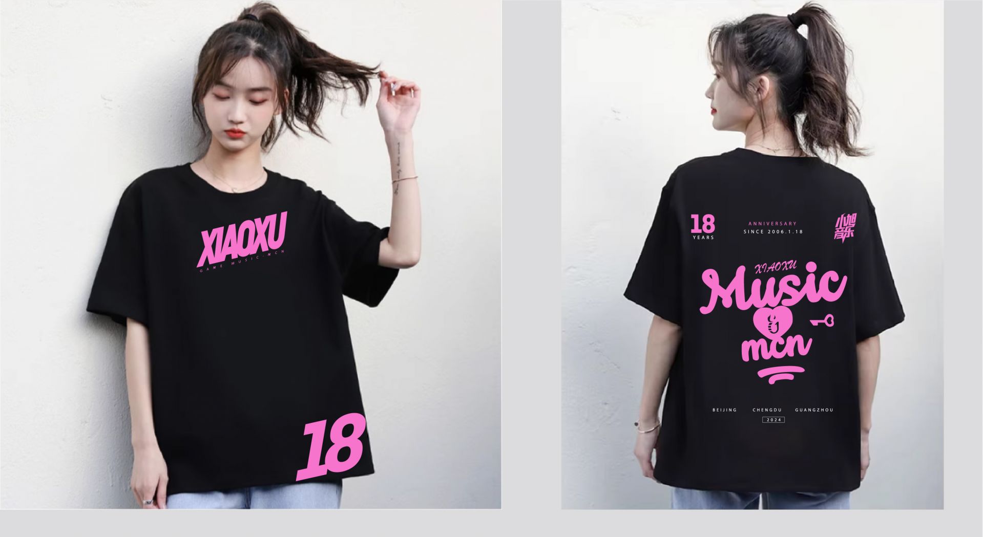 2024年1月,小旭音乐即将迎来成立18周年的纪念日。近日,小旭公司推出了18周年纪念版T恤衫,采用黑色底色和紫红色搭配,给人一种年轻新潮的感觉。T恤衫正面印有18字样,代表小旭团队经历的18载风风雨雨。我们也会在未来看到身着小旭音乐18周年纪念T恤衫的全家福照片。